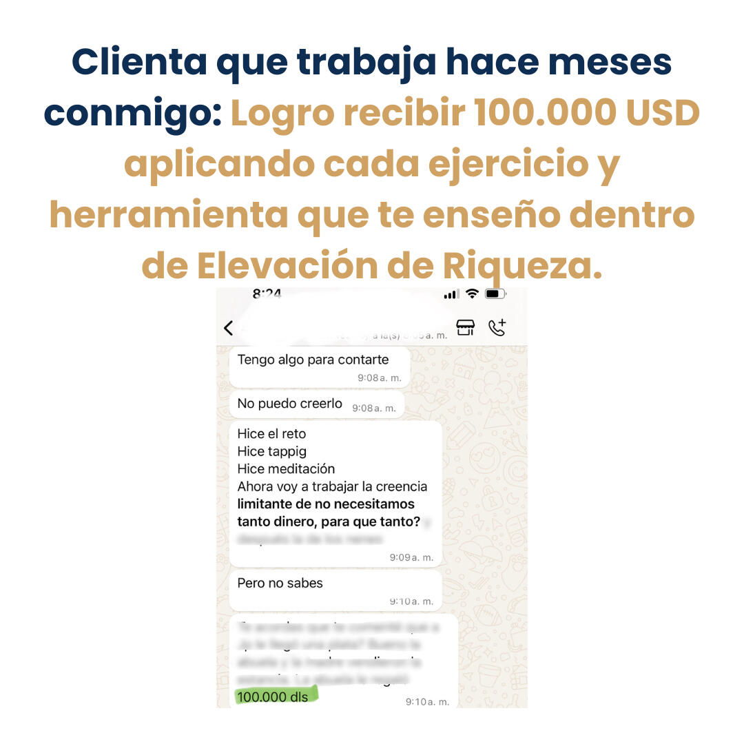 🔥 Como funciona la estrategia de Neurociencia (creencias) para eliminar resistencias inconscientes con el dinero y que así puedas escalar tus ingresos. (Esas resistencias son la razón por la cual tus ingresos suben y bajan, un mes ganas mucho y al otro no).🔥 Como vas a normalizar altas cifras en tu mente para que recibir más dinero sea tu nuevo estándar. (Cuando tu mente ve como familiar o normal esa cifra es cuando las resistencias pasan a un lado y empiezas a recibir cada vez más dinero).🔥 Como Anclar y sostener tu Identidad de Riqueza 24/7 (Esto te permitirá que cuando tu ego, miedos, inseguridades quieran desalinearte sepas que hacer en ese momento para mantenerte en la determinación y poder personal sin que eso te saque del camino).🔥 Como y que hacer para incrementar estratégicamente la cantidad de dinero que generas. (Harás un análisis estratégico en tu negocio para aumentar el flujo del dinero constantemente, ver en donde lo estas limitando y saber como aumentar las transacciones de tus clientes para crear compradores repetitivos).🔥 Como alinear tu autoconcepto a esa cifra que quieres comenzar a ganar. Desde que estándares vas a trabajar de ahora en más🔥 Que herramientas aplicar en tu día a día para estar desde la abundancia en vez desde la escasez o inseguridad con el dinero.